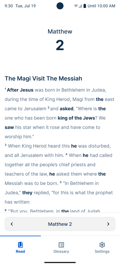Users struggled to navigate the app, especially after viewing verse references, often having to manually navigate back.